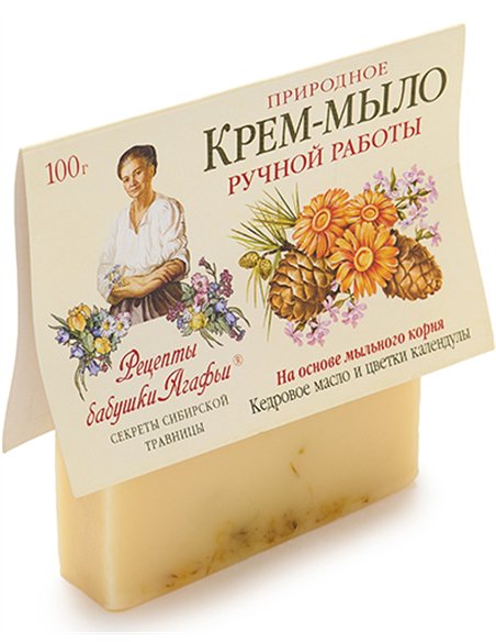 Природное крем-мыло с тонизирующим и легким противовосполительным действием увлажняет и разглаживает кожу. Мыльный корень - это натуральная, хорошо пенящаяся основа, которая намного мягче, чем щелочная, используемая обычно. Масло кедровых орешков питает кожу, способствуя более активному процессу обновления клеток и омолаживанию кожи, а календула очищает ее.