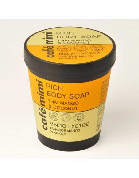 Густое мыло "Тайское манго и кокос" на основе масла кокоса, экстракта манго и провитамина В5 превратит простое очищение кожи в настоящий ритуал красоты и подарит коже бархатистость и сияющий вид.