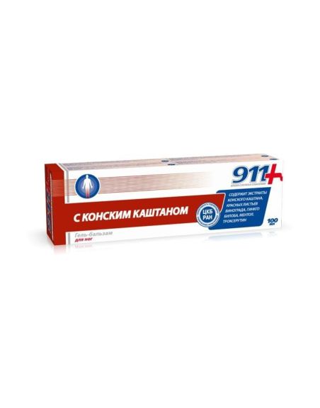 Гель-бальзам косметический с конским каштаном серии 911 Ваша служба спасения за счет содержания целого комплекса растительных экстрактов, эфирных масел и гесперидина улучшает тонус, снимает усталость и напряжение.