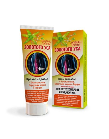 Эффективность Удивительное средство, позволяющее значительно усилить эффект традиционных методов лечения остеохондроза и радикулита. Входящие в состав крема перец и барсучий жир давно применяются в народной медицине для лечения указанных заболеваний. Уникальное сочетание активных ингредиентов способствует улучшению кровообращения, оказывает противовоспалительное и антисептическое воздействие и обладает заметным обезболивающим эффектом.Сок золотого уса, благодаря наличию в его составе флавноидов, не только оказывает спазмолитическое и антиоксидантное действие, но также способствует противоопухолевой активности и активизирует жизненные силы организма.