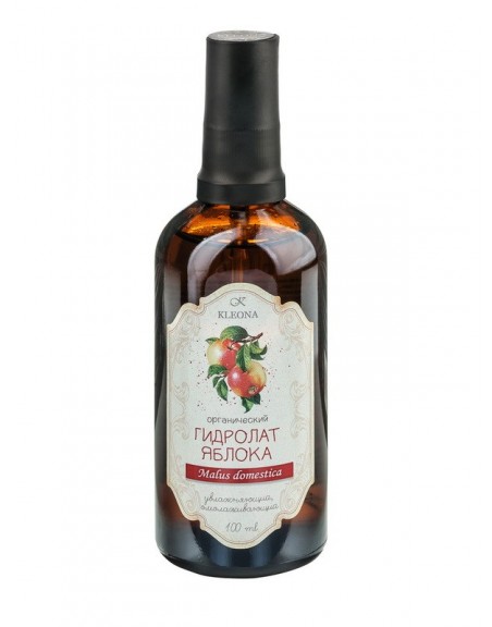 100 % органический продукт паровой дистилляции плодов яблони домашней (Malus domestica). В зависимости от сорта яблок гидролат может иметь разные оттенки и интенсивность аромата.
