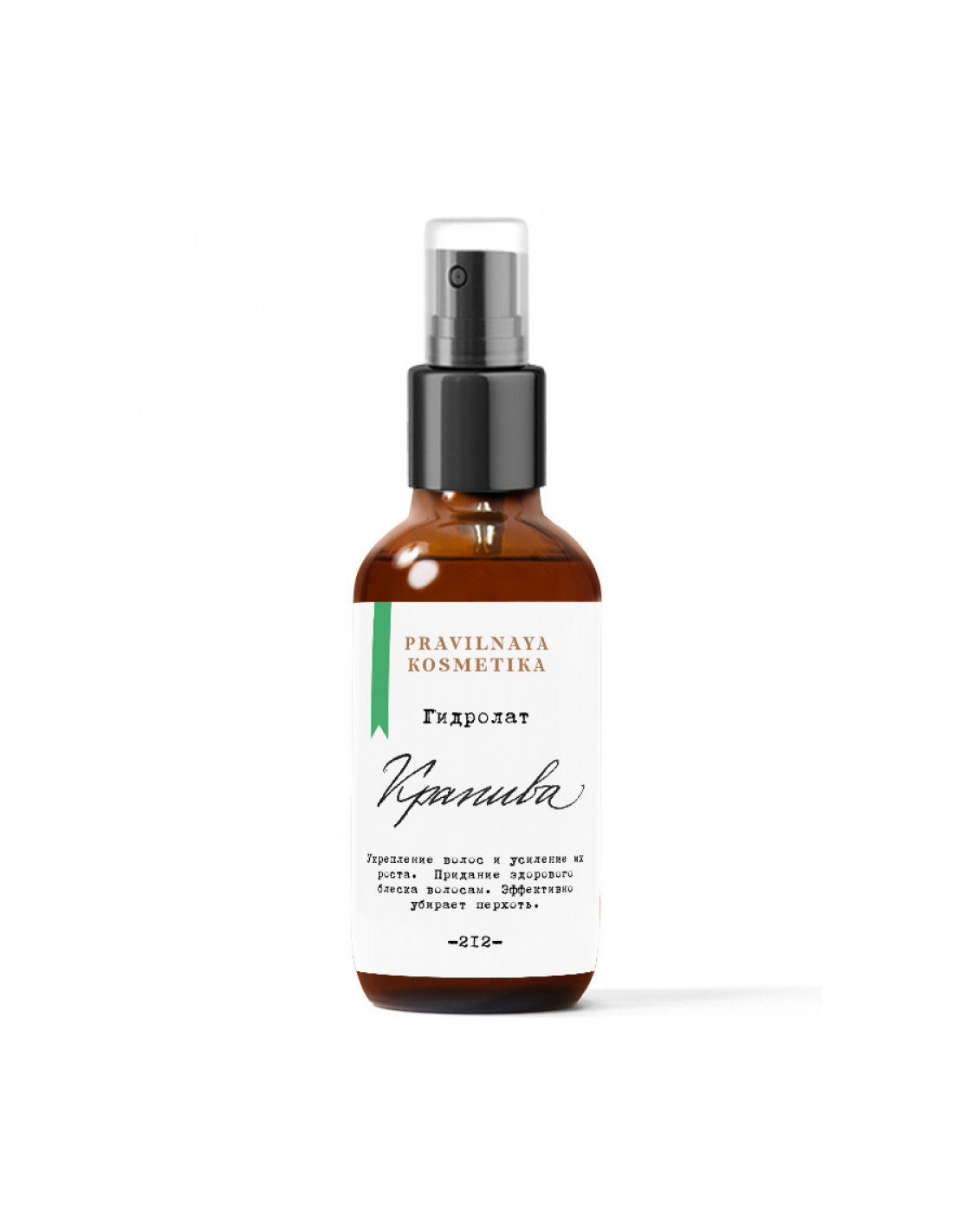 У крапивы травянисто-летний, свежий аромат. Трава богата витаминами А, К, Е, В1, В2, РР, а ещё она содержит аскорбиновую кислоту, органические кислоты, каротин, кремний, серу, железо, магний, медь, кальций и проч. Это витаминный тоник, который регенерирует кожу и спасает от городского стресса. Подходит для нормальной, жирной и комбинированной кожи. Уменьшает тёмные круги под глазами, освежает и бодрит. Гидролат можно добавлять в крем для тела. У крапивы антикуперозные и антицеллюлитные свойства. Она благотворно влияет на кожу, делая её мягкой и улучшая цвет. Эта водичка работает как противовоспалительное и кровоостанавливающее средство. И, конечно же, это верный друг волос. Способствует росту, пробуждает спящие луковицы и помогает в борьбе с перхотью. Подходит для любого типа волос. Обладает дезодорирующими свойствами, а также освежает в жару, увлажняет лицо и волосы.