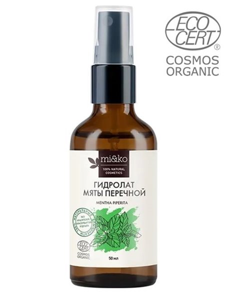 Ингредиенты: Гидролат мяты перечной COSMOS ORGANIC, сертифицирован Ecocert Greenlife в соответствии со стандартом COSMOS