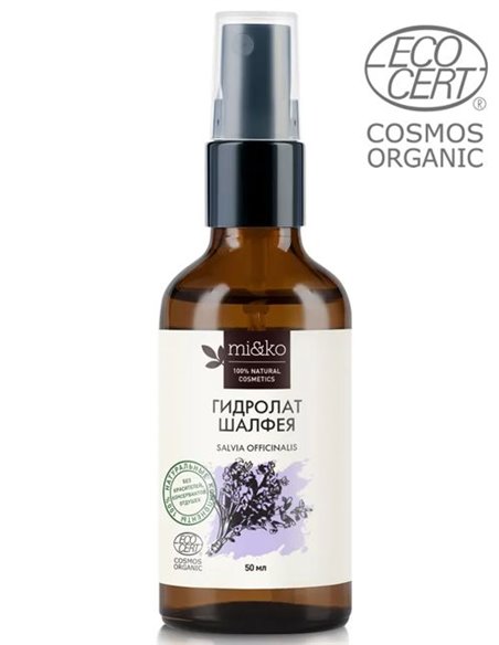 Ингредиенты: Гидролат шалфея COSMOS ORGANIC, сертифицирован Ecocert Greenlife в соответствии со стандартом COSMOS