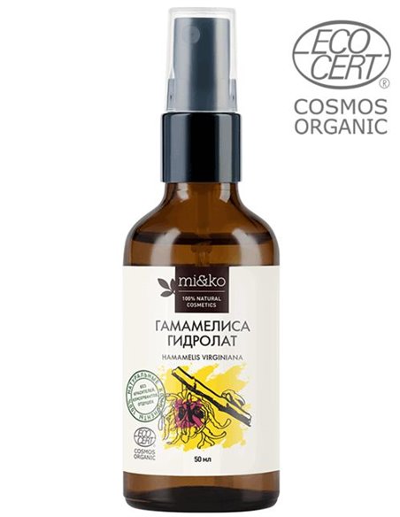 Ингредиенты: гидролат гамамелиса COSMOS ORGANIC, сертифицирован Ecocert Greenlife в соответствии со стандартом COSMOS
