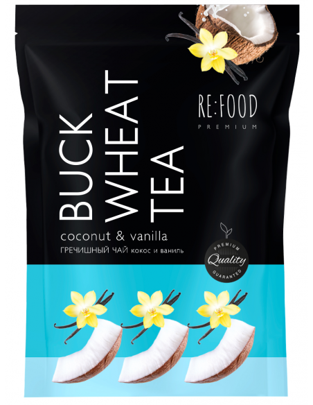 Гречишный чай "Кокос и Ваниль" - это невероятное сочетание нежного, кремово-сливочного аромата кокоса и сладких нот ванили, которые вместе с ненавязчивым вкусом оригинального чая дарят обволакивающий, мягкий вкус кокосово-ванильного бисквита! Гречишный чай Ку Цяо делают из семян татарской черной гречихи. Чайный напиток Ку Цяо содержит множество полезных веществ - витамины А, Е, В, йод, кальций, кремний, железо, цинк, калий, магний и др. Регулярное употребление гречишного чая полезно для организма: чай предотвращает образование тромбов, укрепляет иммунитет, выводит шлаки, токсины и избыток соли из организма, снимает усталость, нормализует работу ЖКТ и уровень сахара. Чай из гречихи, помимо детокс-эффекта, оказывает также расслабляющее действие, а потому рекомендуется не только при похудении, но и в стрессовых или депрессивных состояниях.