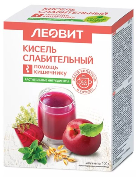 Кисель «Слабительный» ЛЕОВИТ - специализированный пищевой продукт диетического профилактического питания для улучшения моторно-эвакуаторной функции кишечника, снижения риска развития ожирения и метаболического синдрома. Низкая физическая активность, пониженное содержание волокон в пище, недостаточное употребление жидкости, психоэмоциональные стрессы - эти и другие факторы препятствуют бесперебойной работе кишечника и могут причинять существенный дискомфорт. Кисель «Слабительный» содержит яблоко, свеклу, овес, магния сульфат, экстракт перечной мяты, кору крушины, плоды укропа, за счет чего он способствует: