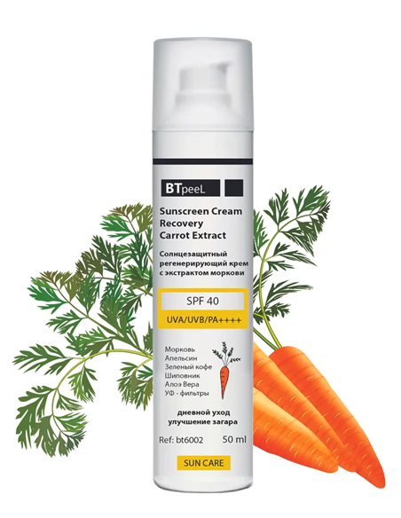 Защита от солнечных лучей и предотвращение преждевременного старения кожи, постпилинговый уход. Содержит двойной защитный комплекс от UVA и UVB лучей. Экстракты моркови, шиповника, апельсина и зеленого кофе, входящего в состав крема, улучшают общее состояние кожи, делают загар более ровным и золотистым. Идеальный загар без фотостарения! Кожа моментально увлажнена и максимально защищена от всех видов ультрафиолета (UVA/UVB/PA++++ ). Не содержит отдушек химического происхождения. Имеет слабовыраженный естественный аромат свежей морковки.