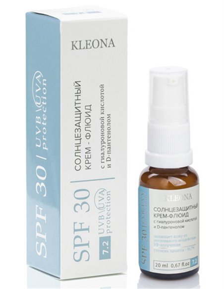 Солнцезащитный крем-флюид на основе УФ-фильтров последнего поколения фирмы BASF, обладающих высокой эффективностью, безопасностью и отвечающих требованиям Европейской комиссии по УФ-защите. Защищает кожу от солнечных ожогов, появления пигментных пятен и фотостарения во время летнего отдыха в странах со средней солнечной активностью, а также при длительном нахождении на открытом солнце.