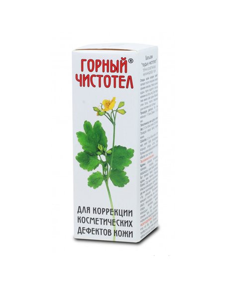 Горный чистотел бальзам улучшает обратное развитие таких кожных патологий как псориатические бляшки, аллергодерматозы, мозоли. При зудящих дерматозах масло чистотела помогает уменьшить зуд и другие неприятные ощущения. В стоматологии масло чистотела оптимизирует лечение пародонтоза, гингивитов, афтозных стоматитов.Действующие вещества: свежий сок чистотела, горечавка, рододендрон золотистый, какалия копьевидная;ПоказанияКосметические дефекты - бородавки, сухие мозоли и папилломыПротивопоказанияПрепарат имеет резкий запах. Будьте осторожны - не допускайте попадания препарата в глаза и на слизистые оболочки!Как принимать, курс приема и дозировкаПрепарат наносится пластиковой палочкой или спичкой (площадь кончика палочки должна быть меньше размера обрабатываемого дефекта кожи). Если площадь папилломы или бородавки значительно больше, обмотайте кончик пластиковой палочки ватой. ПРОДОЛЖИТЕЛЬНОСТЬ ПРОЦЕДУРЫ: на лице и шее - 7-10 мин, на теле - 10-12 мин. Дополнительно смачивайте палочку при высыхании. ПАПИЛЛОМЫ И СУХИЕ МОЗОЛИ: Прикладывать 2 раза в день в течение 2-10 дней. Во время процедуры возможно выделение сукровицы. БОРОДАВКИ: Прикладывать 1 раз в день в течение 2-3 дней. Перед каждой процедурой распаривайте их в горячей воде и осторожно удаляйте ороговевшую кожу.
