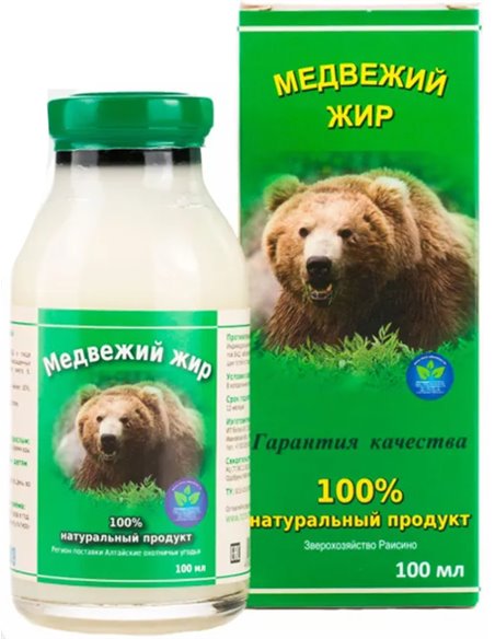 Состав: 100% натуральное средство - топленый пищевой медвежий жир.