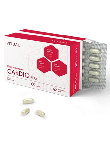 Состав: 10 мг - Пептидный комплекс А-14 (пептиды сердца); 10 мг - Пептидный комплекс А-3 (пептиды сосудов); 10 мг - Пептидный комплекс А-7 (пептиды печени). Микрокристаллическая целлюлоза (Е460, антислеживающий агент); желатин (средство для капсулирования); лактоза (наполнитель влагоудерживающий); кальция стеарат (Е470, эмульгатор).