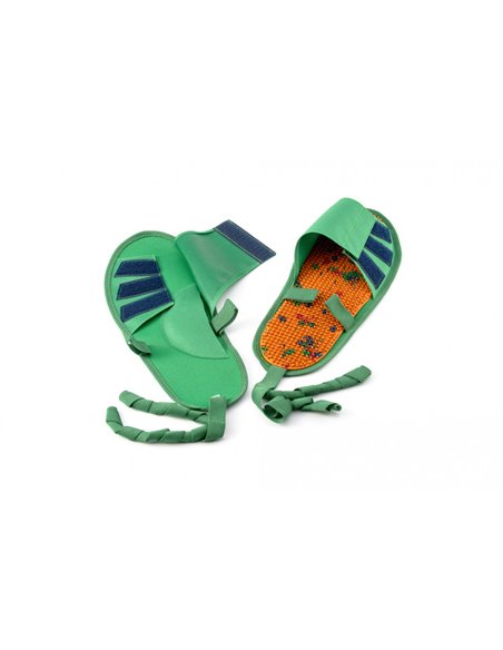 Методика примененияБлагодаря ограничительным валикам, расположенным между иглами и маленькому расстоянию между ними, на стельки можно вставать всем весом, вкладывать их в тапочки и ходить с ними. Вложив стельку внутрь х/б носка (р-р 27-29) и одев его на стопу, находясь в положении сидя, можно прокатывать по полу предметы, например, скалку или стеклянную бутылку для оптимизации действия. Можно подложить вату между стелькой-аппликатором и тапочками на уровне зон, которые нужно активизировать; для усиления эффекта можно положить на стельки тканевую прослойку — 2-3 слоя марли или редкую хлопчатобумажную ткань, смоченную раствором лекарственных препаратов, отваром трав, соляным раствором.