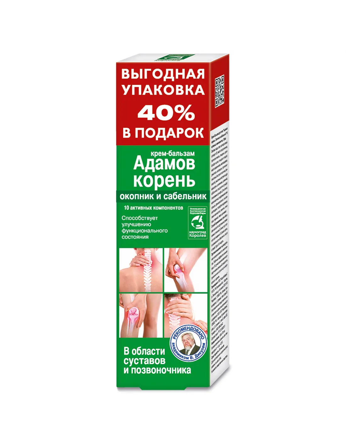 Крем-бальзам для тела "Адамов корень. Окопник и сабельник" 10 активных компонентов – эффективное натуральное средство для тела в области суставов и позвоночника на основе уникального природного растения. Способствует улучшению функционального состояния, тормозит деструктивные процессы и активизирует регенерацию.