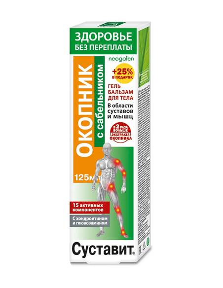 Состав: водный экстракт окопника (живокоста), глицерин, карбомер, коко-каприлат, дикаприлиловый эфир, водные экстракты сабельника, лопуха, девясила, зверобоя, биостимулирующий комплекс микрокапсул проникающих (вода, лецитин, глицерин, цетилпальмитат, гидролизат коллагена), биостимулирующий комплекс противовоспалительный (масло подсолнечное, ПЭГ-40 гидрогенизированное касторовое масло, пропиленгликолевый экстракт прополиса, масляный экстракт ромашки, витамин Е, аллантоин, бисаболол, витамин А, масло семян черной смородины), камфора, глюкозамина гидрохлорид, хондроитин сульфат, гидролизат коллагена, витанол, масло облепихи, масло эфирное эвкалипта, масло эфирное гвоздики, гидроксид натрия, N-(4-нитро-2-феноксифенил) - метансульфонамид, воск пчелиный, динатриевая соль ЭДТА, пропиленгликоль, метилпарабен, пропилпарабен, диазолидинилмочевина, метилхлороизотиазолинон, метилизотиазолинон, лимонен.