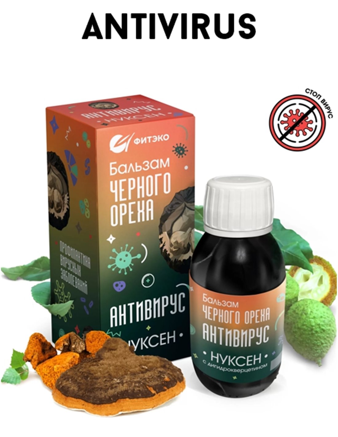 Состав: лист, околоплодник чёрного ореха, огневка (ПЖВМ), ежовик гребенчатый, чага, черный чеснок, куркума, черный тмин, имбирь, пыльца сосны; дигидрокверцетин (экстракт лиственницы даурской), вода очищенная, остаточный спирт до 0,5%.