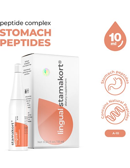 Стамакорт лингвал - биорегулятор для желудочно-кишечного тракта на основе натуральных пептидов в сублингвальной форме применения.