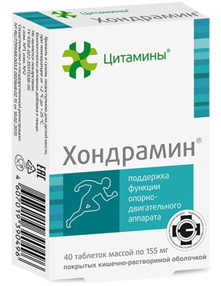 Рекомендуется принимать по 1-3 таблетки за 10–15 минут до еды 2-3 раза в день в течение 30-45 дней. Оптимальным является проведение повторного курса через 3-6 месяцев. Хондрамин не имеет противопоказаний и может использоваться как самостоятельно, так и в рамках комплексной терапии.