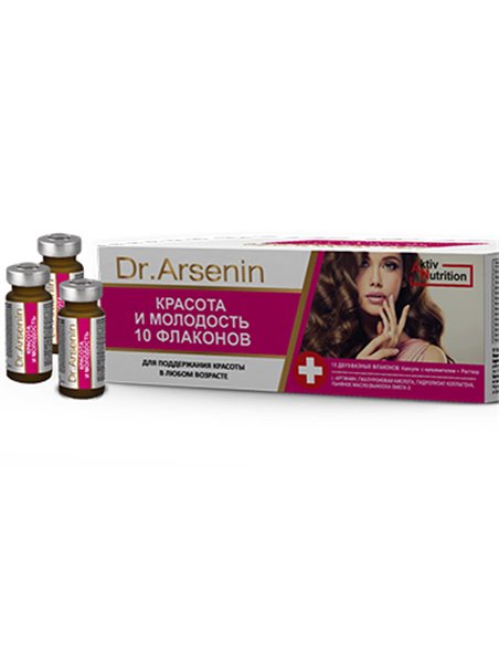 «КРАСОТА И МОЛОДОСТЬ 10 ФЛАКОНОВ» - современный сложный активный комплекс для избавления от многих проблем со здоровьем и улучшения состояния внешнего вида. 2 фазы препарата созданы таким образом, чтобы дополнять, друг друга. Поможет обновить клетки кожи, укрепить ногти, сделать волосы здоровыми и сильными. Уже через неделю кожа станет эластичнее, уйдут мелкие и средние морщины.