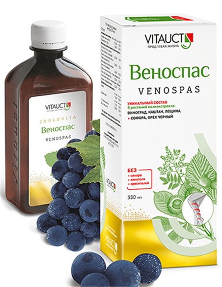 ВЕНОСПАС не содержит сахара. 2 чайные ложки (10 мл) содержат не более 2,4 г сорбита, что соответствует не более 0,2 ХЕ. 1 ХЕ равна количеству продуктов питания, в котором содержится 10-12 г углеводов.