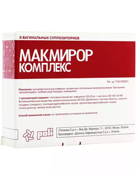 Макмирор Комплекс не нарушает физиологическую флору, что позволяет избежать развития дисбактериоза и быстро восстановить нормоценоз влагалища.