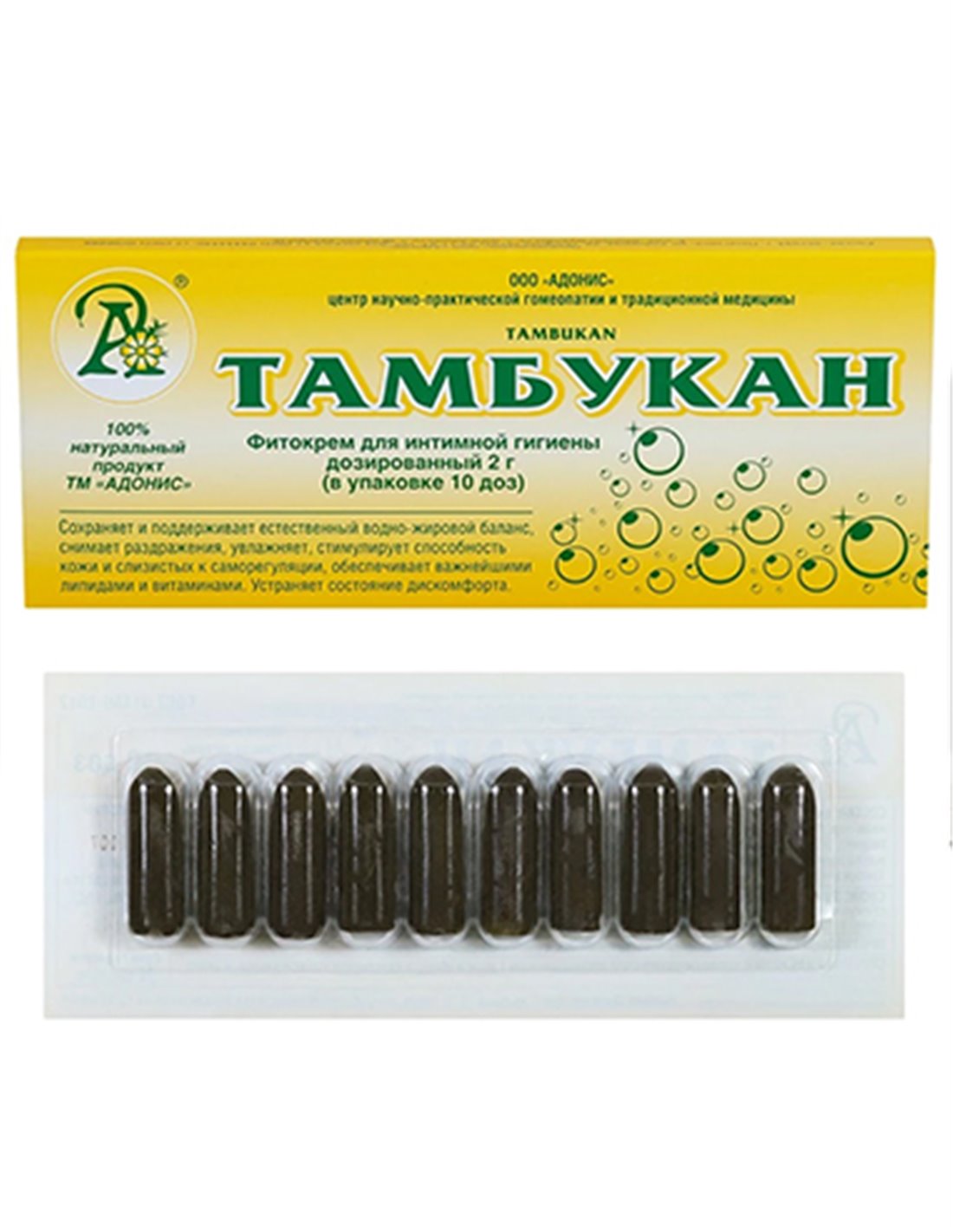 Фитокрем для интимной гигиены в виде вагинальных свечей обладает лечебными, увлажняющими, восстанавливающими свойствами. Свечи- флюид Тамбукан производства Адонис решают целый спектр проблем: