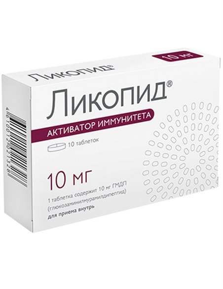 Ликопид - это препарат, который содержит иглюкозаминилмурамилдипептид - синтетический аналог структурного фрагмента оболочки (пептидогликана) бактериальных клеток. Он является активатором врожденного и приобретенного иммунитета, усиливает защиту организма от вирусных, бактериальных и грибковых инфекций; оказывает адъювантный эффект в развитии иммунологических реакций.. Ликопид предназначен для лечения и профилактики различных заболеваний, таких как рецидивирующие инфекции верхних и нижних дыхательных путей в стадии обострения и в стадии ремиссии, острые и хронические гнойно-воспалительные заболевания кожи и мягких тканей (пиодермия, фурункулез и другие), герпетическая инфекция. Принимают Ликопид в виде таблеток внутрь или сублингвально натощак, за 30 минут до еды по рекомендации врача.