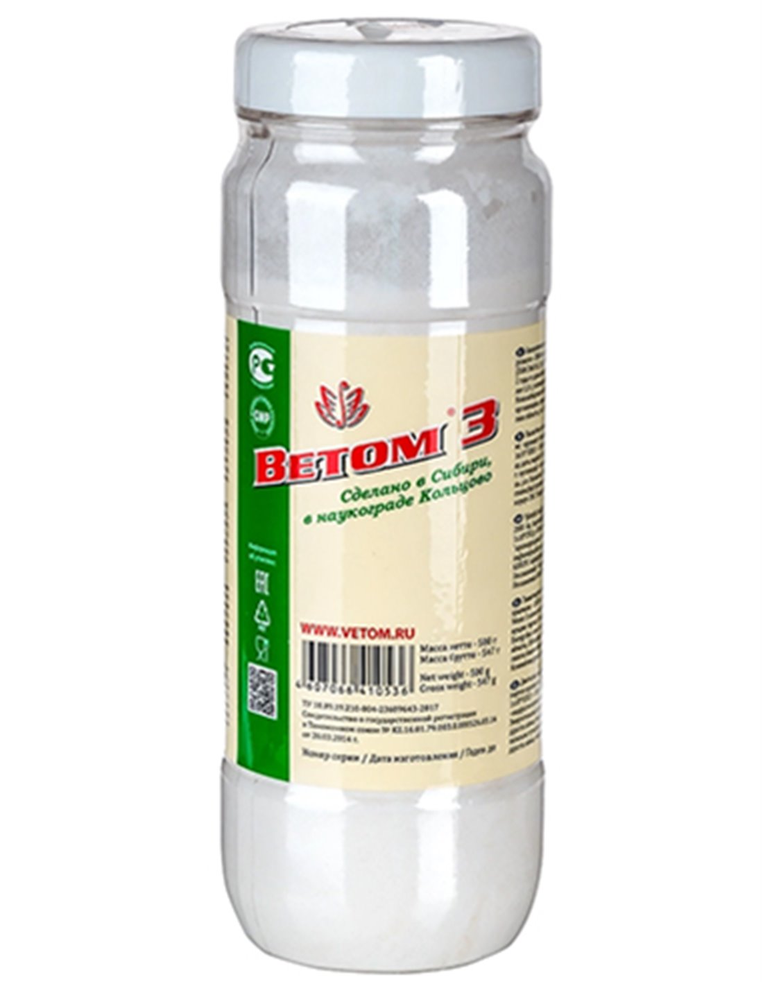 Оздоровительный эффект обеспечивается свойствами бактерий Bacillus amyloliquefaciens, которые, размножаясь преимущественно в толстом отделе кишечника биологически активные вещества, подавляющие рост и развитие патогенной и условно-патогенной микрофлоры. Вследствие этого процесса в кишечнике нормализуется микробный состав до соответствующего эволюционно сложившейся норме, очищаются его стенки от неперевариваемых остатков пищи, что способствует активному выводу токсинов из организма, беспрепятственной доставке биологически активных и питательных веществ. Под воздействием Ветома 3 нормализуются: метаболизм, пищеварение и всасывание биологически активных компонентов пищи в желудочно-кишечном тракте.