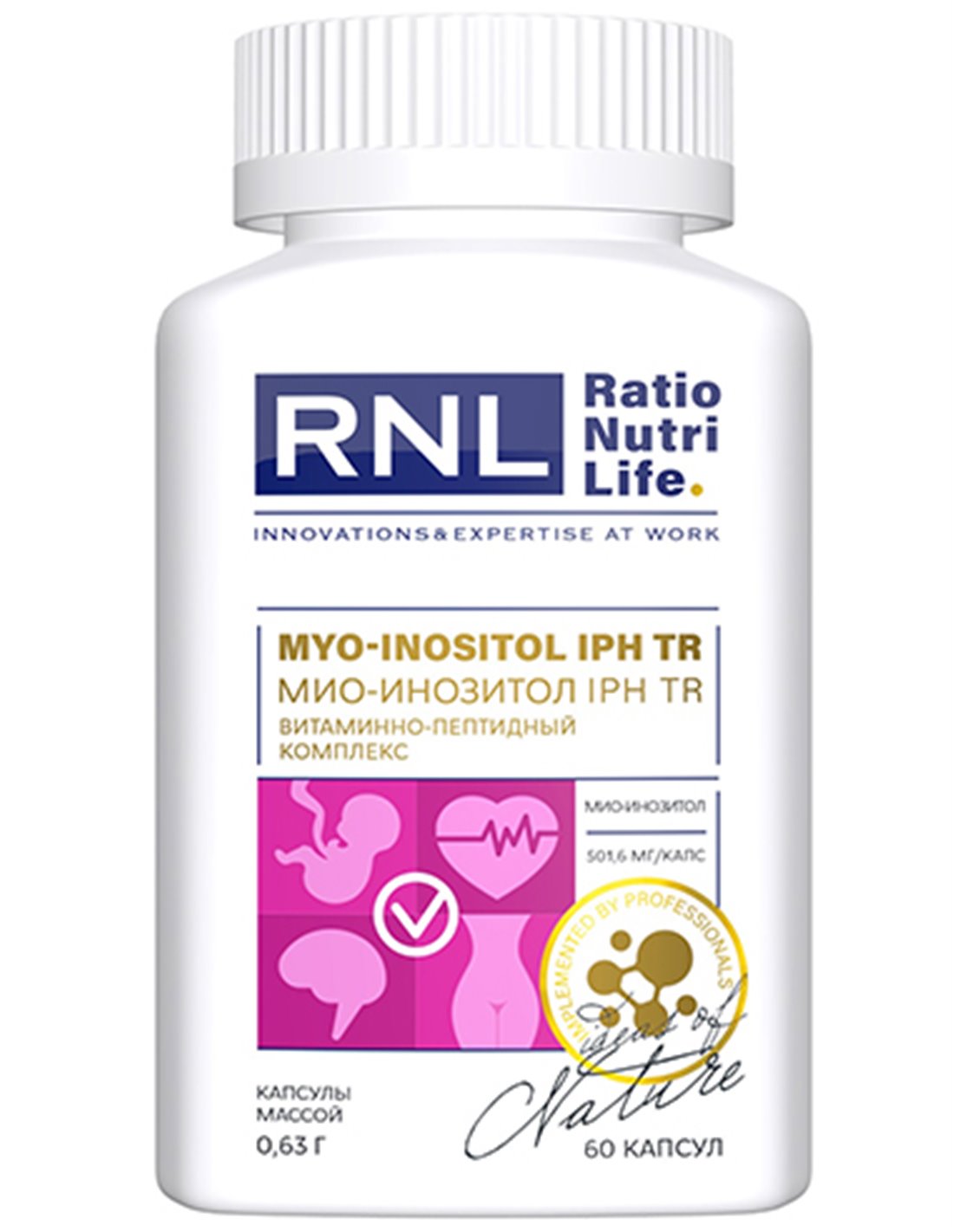 RNL Мио-инозитол 501,6 мг с пептидом IPH TR способствует нормализации баланса половых гормонов, гормонов щитовидной железы и инсулина, улучшению фертильности, регуляции уровня холестерина и глюкозы, уменьшению беспокойства и улучшению сна.