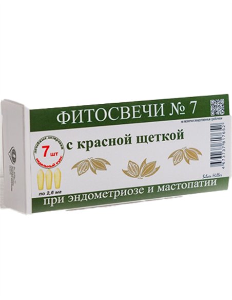 Натуральные ФИТОСВЕЧИ «С красной щеткой» - содержит природный растительный комплекс на основе растений с выраженным действием, которые оказывают интенсивное противовоспалительное, болеутоляющее, противоинфекционное, противоотёчное действие. Компоненты состава в комплексе способствуют предотвращению воспалительных процессов в области малого таза, способствуют устранению эндокринных нарушений: зоба, заболеваний надпочечников, воспалительных процессов в почках и мочевом пузыре, лимфоузлах.
