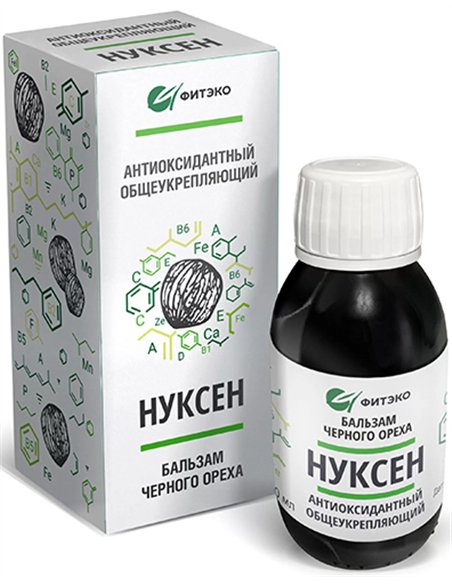 — общеукрепляющее и тонизирующее действие бальзама оказывает большое содержание витаминов, минералов, аминокислот, поэтому чёрный орех необходим для истощенных, больных людей, страдающих авитаминозами. Органические кислоты черного ореха являются источником микроэлементов и оказывают детоксирующий эффект. Витамин А повышает устойчивость к инфекциям, участвует в регуляции синтеза белков, окислительно-восстановительных процессах, функции клеточных и субклеточных мембран, помогает нормальному обмену веществ, влияет на формирование костей и зубов, обладает способностью замедлять старение организма и помогает росту новых клеток.