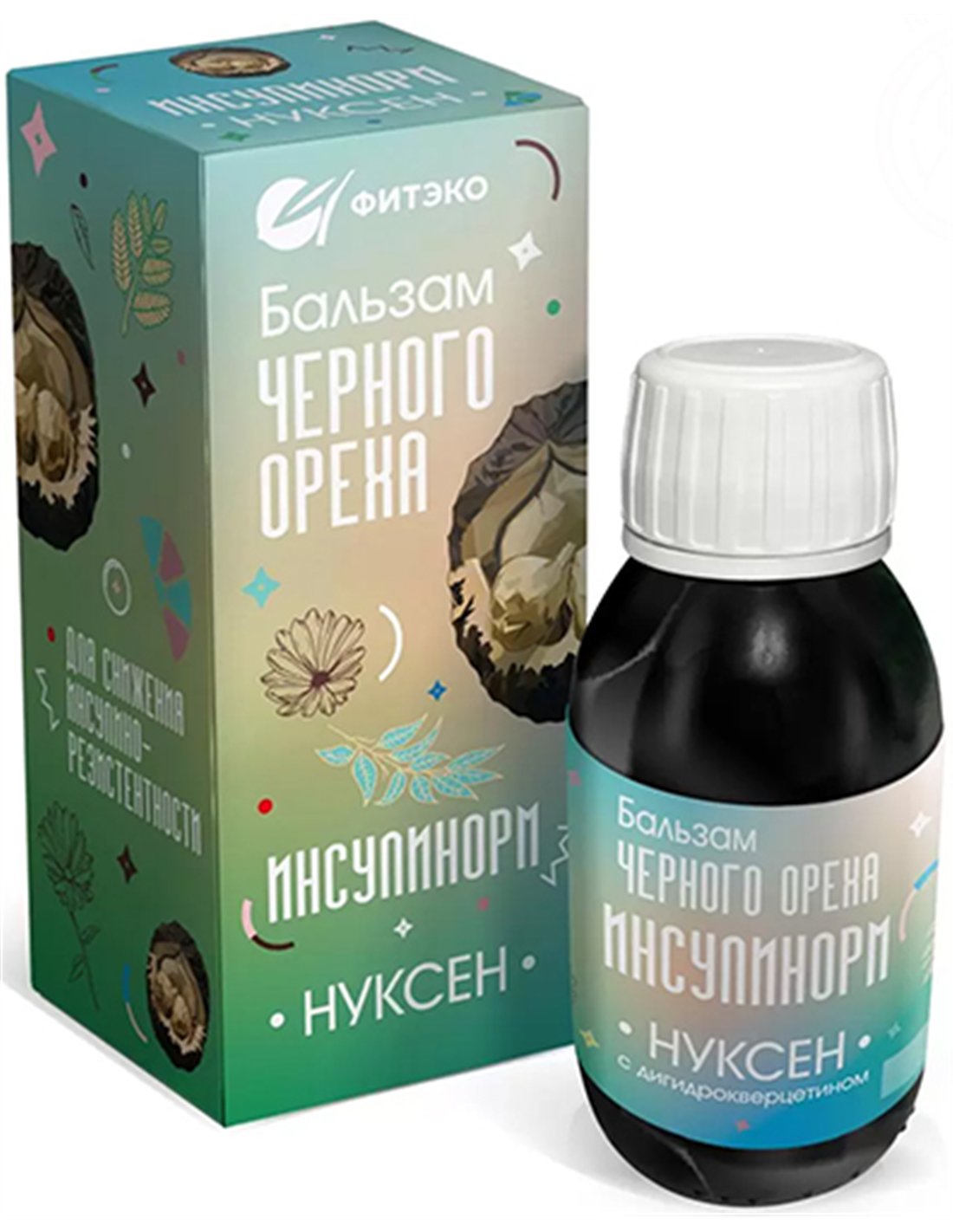 Состав: лист, околоплодник черного ореха, трава галеги лекарственной, побеги черники лесной, гриб чага, створки фасоли, семена расторопши, корень одуванчика, корень лопуха, корень солодки, корень куркумы, лист крапивы, цветки гибискуса; вода очищенная; дигидрокверцетин; калия сорбат.