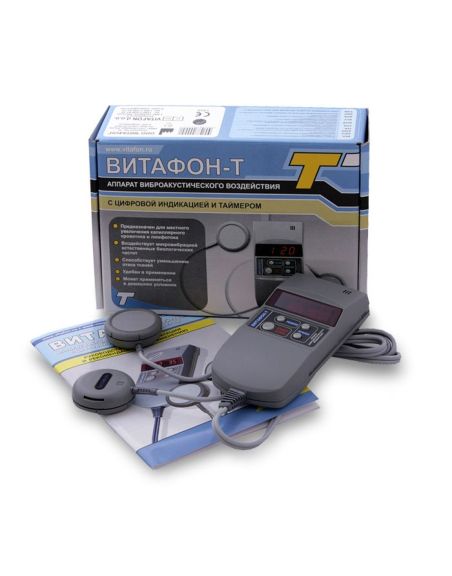 Модель Витафон-Т оснащена таймером и цифровым дисплеем, что позволяет устанавливать длительность процедуры и не следить специально за временем.