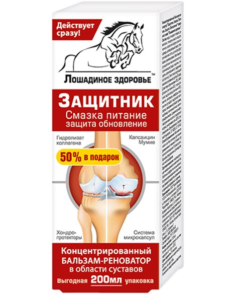 Коллаген (Collagen) - фибриллярный белок, составляет основу соединительной ткани организма (сухожилия, хрящ, кость) и обеспечивает ее прочность и эластичность. Способствует регенерации и укреплению хрящей, связок, повышает их прочность и упругость, улучшает подвижность суставов и позвоночника. Образует сверхпрочную внеклеточную структуру для защиты хрящевой ткани. MSM (метилсульфонилметан) -источник биологически активной серы. Содержание серы в организме человека уменьшается с возрастом, особенно в результате нарушения обмена веществ. Сера - неотъемлемая составляющая протеинов большинства тканей организма. Сера образует гибкие дисульфидные связи внутри протеинов, которые обеспечивают гибкость и подвижность тканей. Все клетки организма находятся в состоянии постоянной регенерации, для которой необходимо присутствие достаточного количества серы в нашем рационе, что обеспечит противостояние разрушению тканей свободными радикалами, а значит, будет способствовать омоложению. Витамины группы В укрепляют коллагеновый каркас костной ткани, помогают сохранять баланс минерального и солевого обменов. Стимулируют суставной метаболизм, при артрозах и артритах способствуют восстановлению клеток хряща. Тормозят возрастные дегенеративно-дистрофические процессы в суставах, препятствуют накоплению гомоцистеина, повреждающего соединительные ткани. Мумиё (Asphaltum) - один из самых мощных природных биостимуляторов, более 3 тысяч лет широко используется в медицине. При заболеваниях опорно-двигательного аппарата активизирует репаративные процессы, ускоряет восстановление костей и суставов, замедляет процессы старения сустава. Обладает противовоспалительными, антитоксическими, иммуностимулирующими, общеукрепляющими свойствами, в несколько раз усиливает действие лекарственных растений. Биостимулирующий комплекс микрокапсул проникающих является “транспортным средством”, обеспечивающим быстрое и беспрепятственное проникновение активных веществ через кожный покров к глубоким тканям. Высвобождаясь из микрокапсул, компоненты бальзама начинают действовать в непосредственной близости, что позволяет достигнуть максимальной эффективности. Преимущества бальзама - реноватора: многостороннее комплексное действие, натуральный состав, повышенная концентрация активных веществ, высокая био доступность компонентов, гипоаллергенность.