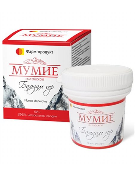 Именно в мумие Бальзам гор, которое производит компания Фарм-продукт, их содержание равно 16,65 %, что значительно превышает показатели многих наших конкурентов. Все благодаря высококачественному исходному продукту и эксклюзивной технологии обработки, которая позволяет отчистить сырье, но при этом не потерять полезных свойств и сохранить всю пользу этого подарка природы. При изготовлении таблетированного мумие Бальзам гор мы не используем ни одной дополнительной добавки, только отчищенное и высушенное Алтайское мумие.